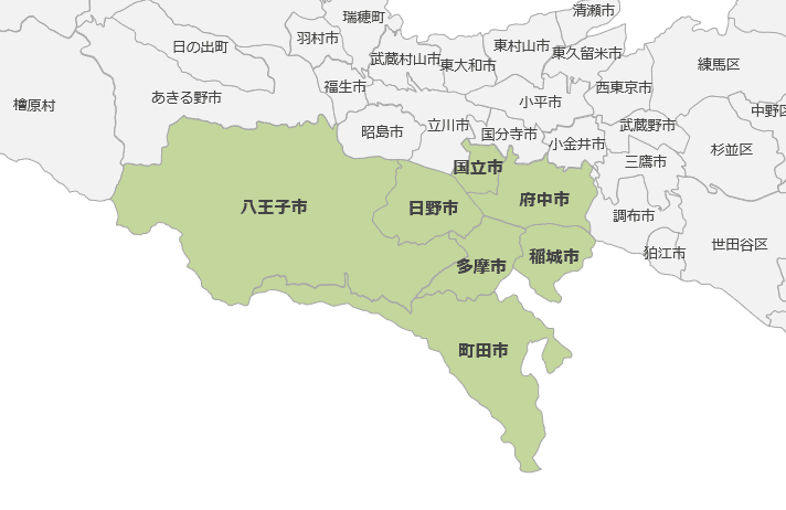 多摩市全域。隣接する町田、八王子、稲城市も往診可能です。